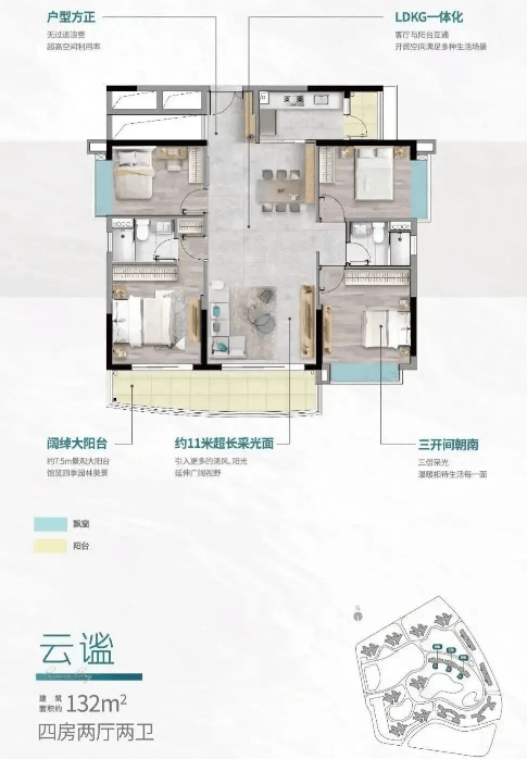 主力户型为86-154㎡的三至四房,得房率较高(约94%),部分户型采用LDK一体化设计、双阳台、南北对流等布局,空间利用率高,居住舒适度佳。