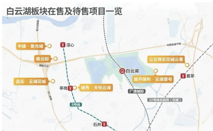 区位价值:越秀天悦云湖位居白云湖数字科技城启动区核心位置,独占千亿科创高地发展红利。项目与广州最大的城心湖——白云湖直线距离约200米,坐拥一线湖景资源,是广州主城区湖居的第一选择。