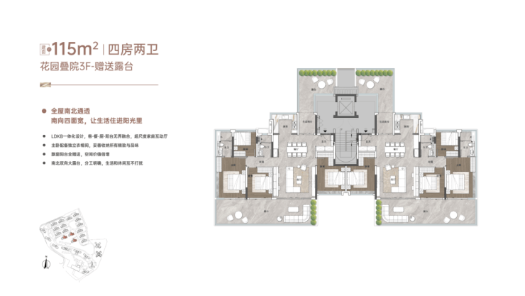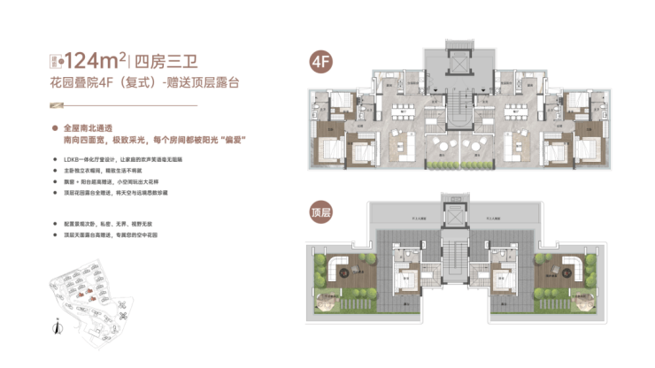 主打四房两卫或三卫,赠送私属花园、露台或顶层天台,让客户享受墅级居住体验。