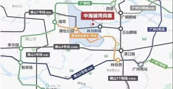 项目位于映月新城周边,目前已有两条轨道交通:佛山1号线及南海新交通。未来还将新增三条地铁线(佛山7号线、广州10号线、19号线),并有两条主干道与广州环城高速对接。此外,近期计划新增两条主次干道直接与广州路网相连,极大提升了出行便利性。