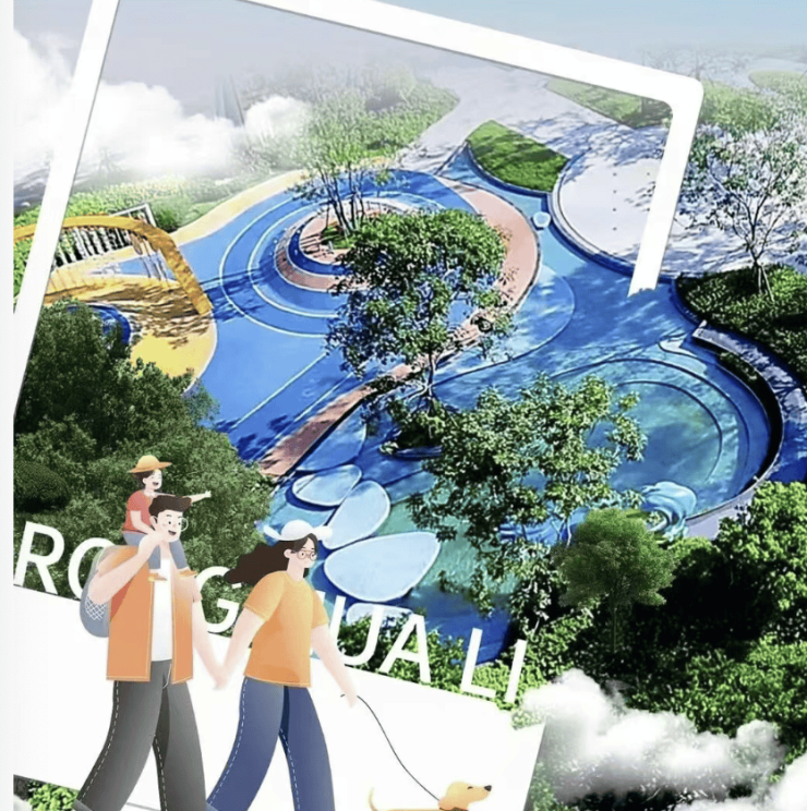 项目以“森灵公园+中轴园林+会客厅花园”构建“双园一河”生态体系: