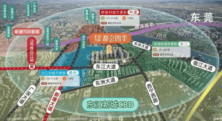 城市界面较差:由于项目处于政府规划中的东江新城核心地段,目前周边旧改正在稳步推进中,需要时间逐步兑现,城市界面较为杂乱。