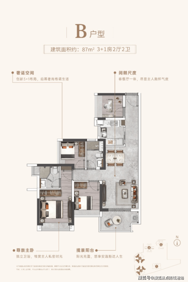 114㎡五房:双卧朝南+巨幕阳台,实测通风效率达国标1.5倍,适配三代同堂。