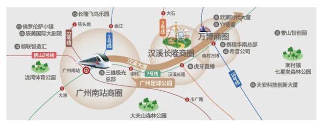 除了枢纽和商圈优势,项目所在的汉溪大道(建设中),将贯通广州南站-长隆-万博核心板块,构建万亿级产业矩阵,目前已吸引希音、YY直播、虎牙、小鹏汽车、三雄极光等超1700家高新科技与电商龙头企业进驻,千亿产业廊道之上,全球商业新高地正在崛起。大量企业的进驻,将带来庞大的人口流入和消费需求,进一步提升区域的活力和价值,也让广州足球公园的投资潜力得到进一步释放,无论是自住还是投资,都能享受产业发展带来的红利。