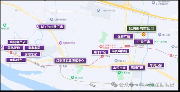 除了家门口的成熟社区商业之外,项目 5 公里范围内,还拥有多个大型高端商业体,包括三溪美林天地、保利鱼珠时光、山姆会员店、居然之家、M-PARK 漫广场、宜家家居等,这些大型商业体涵盖了高端零售、特色餐饮、休闲娱乐、亲子体验、家居建材等全方位的高端商业业态,可满足业主更高品质的消费需求与休闲娱乐需求。周末闲暇时光,无论是和家人一起逛山姆会员店采购全球好物,还是和朋友一起在保利鱼珠时光打卡特色餐饮、网红咖啡店,或是带孩子在漫广场体验亲子游乐项目,都能轻松实现,一站式解锁城芯繁华生活。