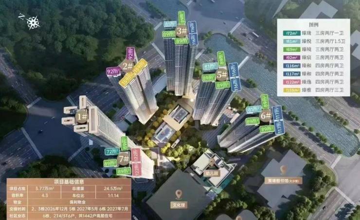 在户型设计上,项目打造了建面约 81-158㎡的三至四房全周期户型,所有户型均采用了迭代创新的设计理念,实现了超高的空间使用率,远超同片区同面积段的产品,真正实现了同等面积多一房,同等空间更舒适的居住体验。所有户型均实现了全明格局、南北通透、动静分区,搭配宽景阳台、多飘窗设计,最大化拓展了室内空间与观景视野,为业主打造了舒适、实用、高品质的居住空间。