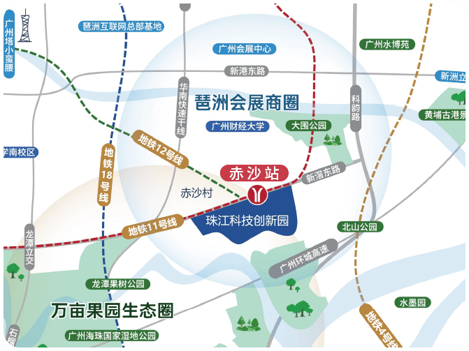 地铁 11 号线、12 号线赤沙站上盖,30 分钟直达广州南站、广州东站、白云国际机场,7 分钟到港澳客运码头,2 小时抵达港澳。