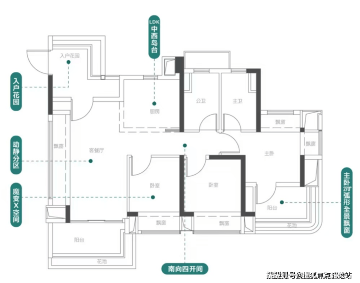 南向四开间加上餐厅直面飘窗,不仅采光好,而且南北通透。