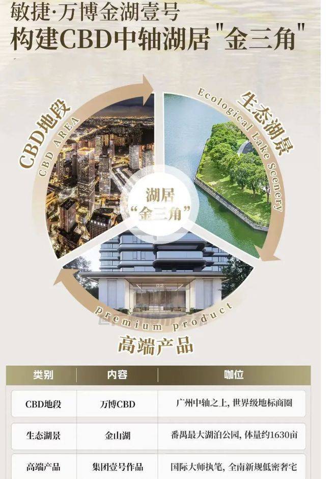 敏捷・万博金湖壹号,万博 CBD 版图中的璀璨明珠,堪称湖居生活的理想之选!项目傍依番禺最大湖泊公园 —— 金山湖文化公园,水域广阔,具备 “城市级湖居” 的独特潜力。