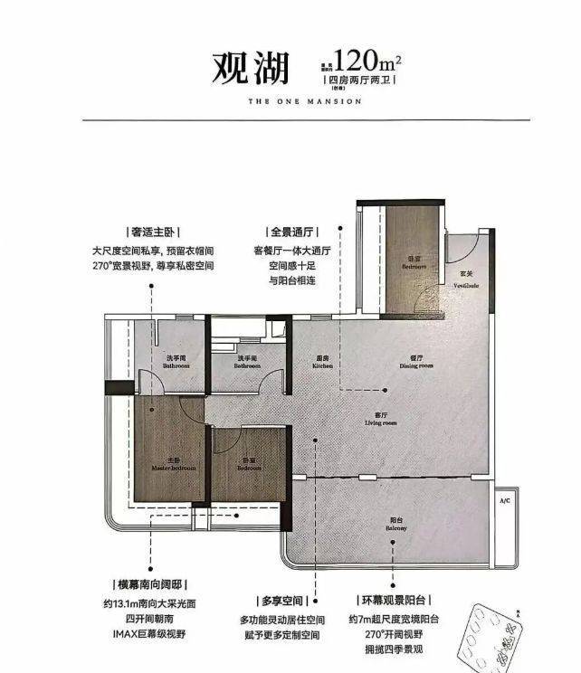 户型设计亮点满满。主推建面约 98 - 148㎡全南向新规奢宅,每个户型都独具特色。98㎡四房两厅两卫,东南向,超 6m 阔尺阳台,270° 环幕视野,四开间朝南。116㎡四房两厅两卫,东南向,奢阔景观阳台超 7m 大开间,南北通透。120㎡四房两厅两卫,东南向,百米楼距园景,环幕景观阳台尺度大。132㎡四房两厅两卫,西南向,超 50㎡超感大方厅,格局大气。148㎡四房两厅两卫,西南向,超 16m 超大尺度观景面,南北双阳台。户型设计注重采光、视野与空间感,满足不同家庭结构对品质生活的追求。