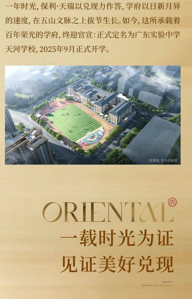 对于天河乃至整个广州的教育格局而言,保利天瑞配建的学校有着非同寻常的意义。项目配建一所 45 班公办九年一贯制学校,现已正式官宣引进广东实验中学教育集团办学,学校日常运营与管理将由广东实验中学直接派出专业团队负责。在天河区的楼盘中,配建公办学校直接引进省市属顶级教育集团办学,保利天瑞是首个实现这一突破的项目,不仅填补了板块优质教育资源的空白,更为天河教育均衡化发展注入新的活力。这所学校计划 2025 年 9 月正式开学,从规划到落地全程高效推进,让业主子女无需漫长等待,即可在家门口享受优质公办教育,这也是保利天瑞最具竞争力的价值点之一。