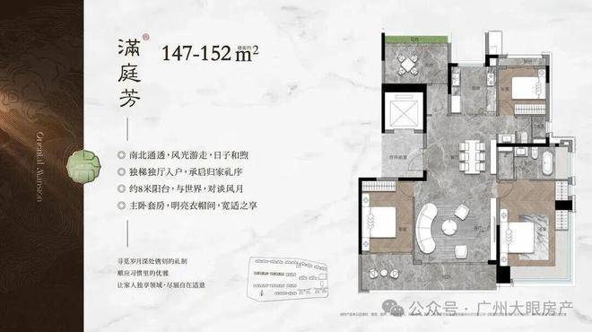 社区采用四排小高层布局,南北板式设计,户户朝南,从根本上规避了户型对角的弊端。小高层由南往北一字排布,呈现阶梯式拾级而上的形态,即使是后排低楼层住户,也能拥有充足的采光,实现全社区采光雨露均沾。更低的梯户比进一步提升了居住舒适度,项目板楼以 1 梯 2 户、2 梯 2 户、3 梯 2 户为主,打破了专梯入户仅存在于 200 平方米以上大户型的行业惯例,约 143 平方米户型即可实现专梯专户,兼顾实用性与体面感。建面约 268 平方米的旗舰户型更是做到 3 梯 2 户,配备专属保姆电梯,实现主人与保姆动线分离,最大化保障居住私密性与便捷性,平均一部电梯仅服务 13 至 38 位业主,电梯等待时间极短,居住体验感拉满。