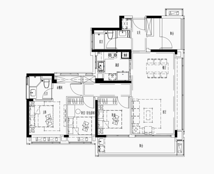 140平方米3+1房:5.6米超大宽厅+LDKB一体式设计,主卧L型转角景观飘窗,直面江景,适配高端改善需求。