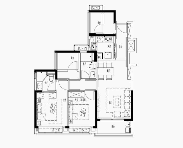 户型亮点:南北通透,得房率超82%,主卧270°观景飘窗