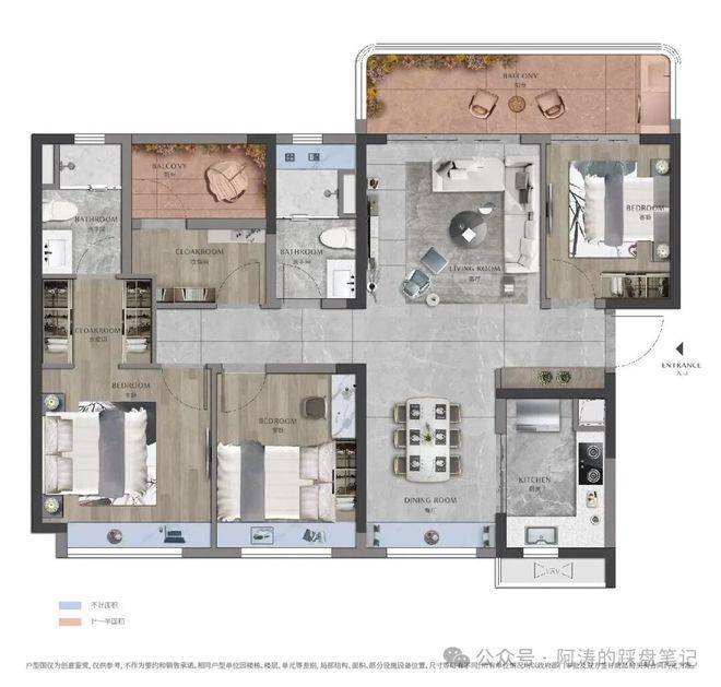 二期天御产品线属于升级型住宅系列,主力户型134㎡四房及210㎡大平层空间。大户型产品通常更注重家庭生活功能区分,如主卧套房系统、独立衣帽间及多功能生活阳台设计。居住空间不仅满足基本生活需求,也向改善型家庭生活方式转变。