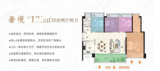 125㎡四房户型则面向改善型家庭,布局更加阔绰,四房两卫设计,满足多孩家庭或三代同堂的居住需求。户型采用南北通透设计,客厅配备大阳台,拓展了活动空间与景观视野;主卧套房设计,配备独立卫生间与衣帽间,提升居住品质;书房空间独立,可作为办公或学习区域,兼顾家庭生活与工作需求。新规户型在细节上更加人性化,预留充足收纳空间,有效解决家庭收纳难题,提升居住幸福感。目前所有户型均开放实体板房,购房者可实地考察感受空间布局与居住体验。