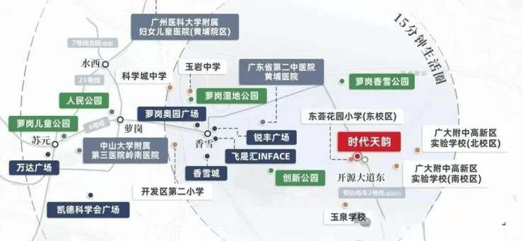 该校校长荣获“全国杰出校长”“全国名优校长”“广州市基础教育系统名校长”等多项荣誉,凭借丰富的办学经验与先进的教育理念,带领学校取得了优异的教学成果。此次东荟花园小学东校区由原班人马助阵,成功的教育培养模式将大概率得到复制与传承,为业主子女提供充足的教育安全感。初中阶段,时代天韵所属的萝岗街道对口苏元中学、科学城中学、铁英中学、省教育研究院黄埔实验学校(初中部)、北京师范大学广州实验学校(初中部)等广州重点中学,距离项目均在5-10公里范围内,可通过公共交通或自驾便捷抵达,为子女升学提供多元优质选择。