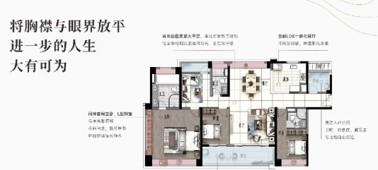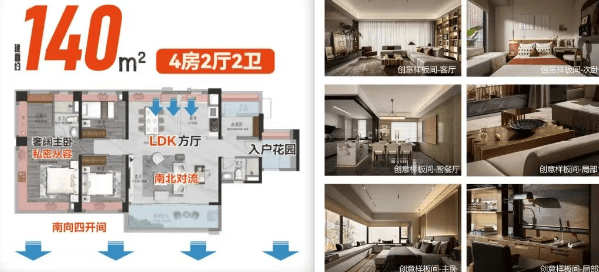对流约140平方米4房2卫:LDK一体化联厅设计,南北通透,客厅近6米超大进深;阳光入户花园增添生活情趣。