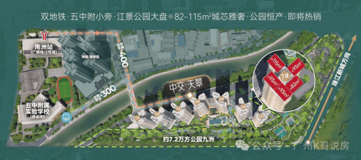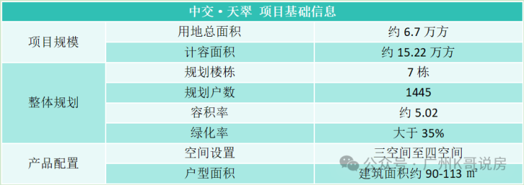 中交天翠总用地面积6.7万㎡,计容建面约15万㎡,这规模是海珠近年少有的大盘。