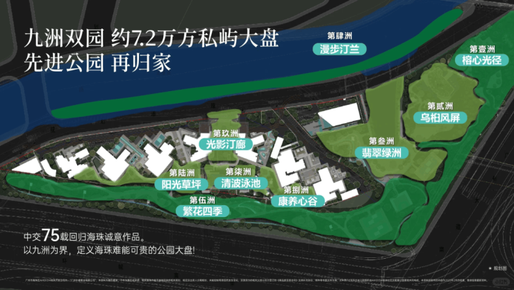 南面和东面九洲双园,搭配小区内七大运动主题大花园,拥有约7.2万㎡景观配套,在海珠很少见,也只有中海大境、琶洲南等豪宅盘,有这个条件。