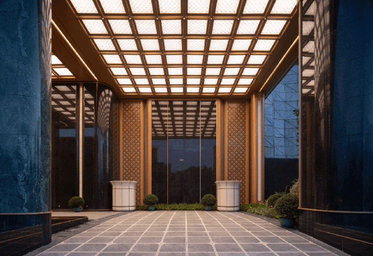其打造的“中央车站”式地下车库,以马蹄石铺地、大理石立面与透光穹顶,构建出充满仪式感的落客空间。