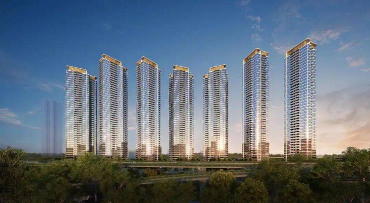 项目将建7栋住宅,都是超高层46-48层高,一字排开布局。