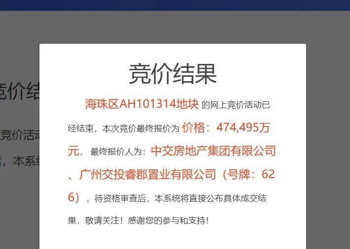 2024年8月20日,中交联合体以底价约47亿元,楼面价3.2万元/㎡(扣除3510㎡公建配套)拿下海珠AH101314地块。