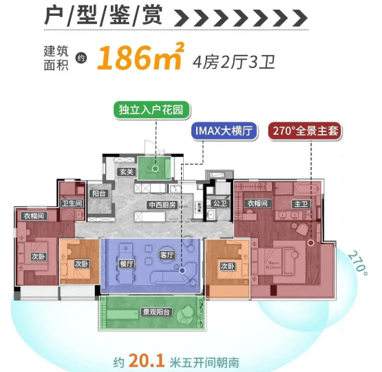 四、户型产品力:110-186㎡宽境设计,户户观景的豪宅尺度