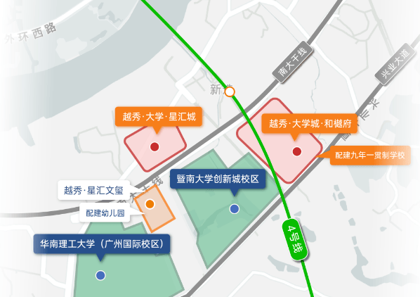 项目距离地铁4号线新造站仅1.6公里,未来可通过小区东门直接连接广医南路,步行距离控制在800米以内。乘坐地铁可以直达大学城、万博、琶洲和金融城等重要区域。