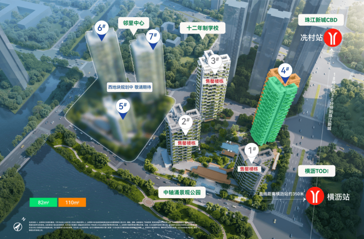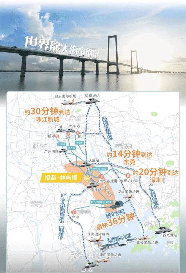 项目距离地铁18号线横沥站约400米,4站直达珠江新城,30分钟通勤至琶洲、万博等商务区。未来规划地铁15号线、NS2线交汇,自驾可通过广澳高速、南沙港快速路快速通达市区及周边城市,深中通道开通后至深圳车程缩短至1小时内。