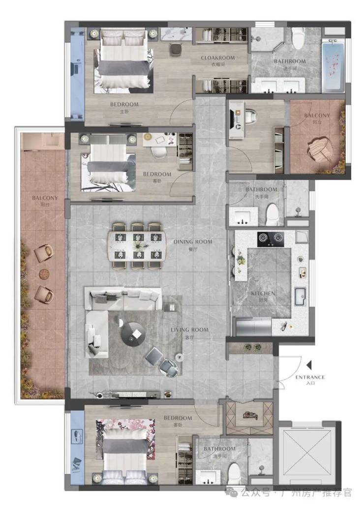 • 高配:主卧奢配独立步入式衣帽间、淋浴区、尊享高配私域