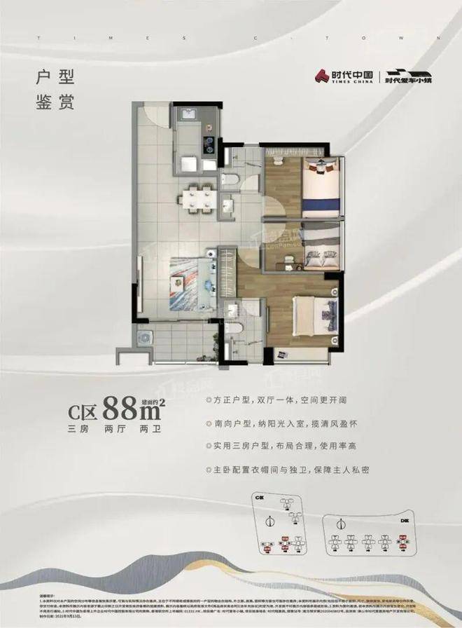 88 方三房户型
