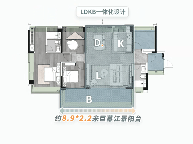 126㎡四房两厅两卫则采用了南北通透的横厅设计,这种设计在视觉上更加开阔,增加了客厅的进深感。入户旁的房间可以灵活改成书房、琴房或客房,满足不同家庭成员的使用需求。8.3米长的跑道式阳台连通次卧,将江景和园林景观无缝衔接,让室内外的界限变得模糊,仿佛置身于大自然之中。目前有多套房源在售,均价约46000元/㎡,适合追求生活品质的改善型家庭。