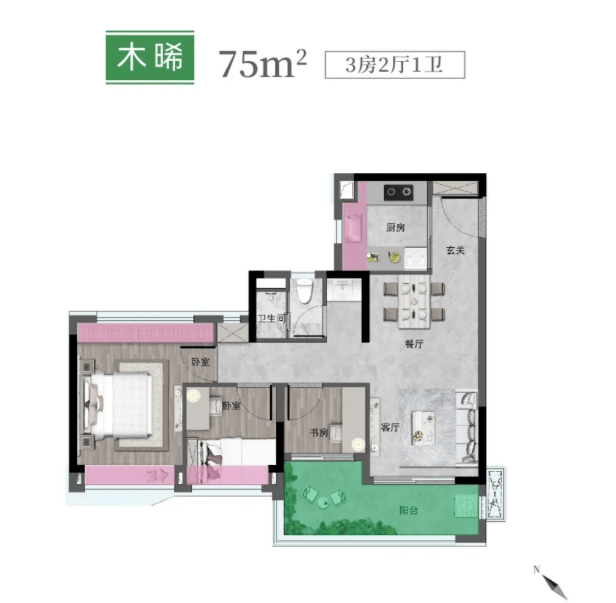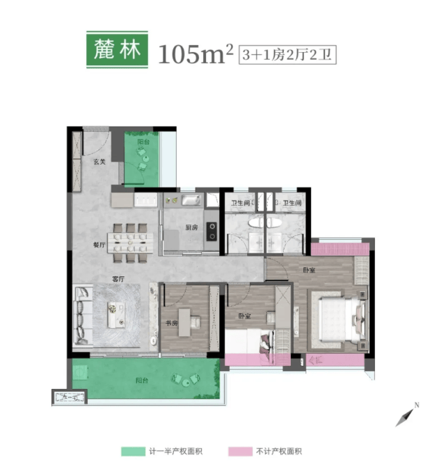105㎡3+1房两卫:一步到位的“舒适大宅”