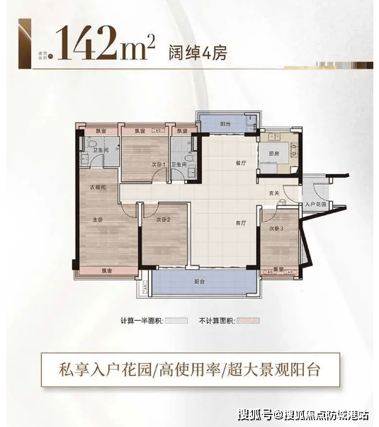 建面约 125㎡的户型为舒适三房,空间尺度更大,客厅开间宽敞,餐厅与客厅相连,打造了开阔的公共活动空间,主卧为套房设计,配备独立卫生间与衣帽间,提升了居住的私密性与舒适度,适合三代同堂的家庭居住。建面约 142㎡的户型为奢阔四房,南向双阳台设计,采光通风效果极佳,各个房间空间宽敞,布局合理,兼顾了实用性与品质感,适合对居住品质有更高要求的改善型家庭,无论是家庭聚会还是日常居住,都能满足需求。