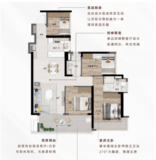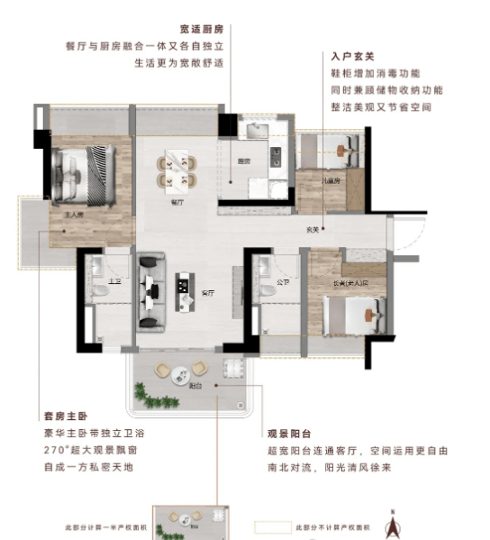4. 04/05户型 建面约88㎡ 3房2厅2卫:主卧配备270°大飘窗,采光充足,观景效果佳;U型厨房设计,满足日常烹饪需求;户型动静分区合理,休息区与活动区互不干扰,提升了居住的舒适度。