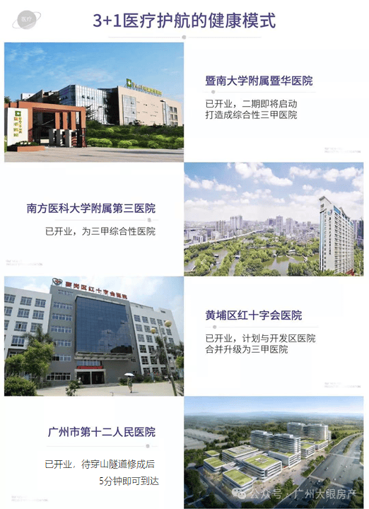 健康是美好生活的基石。富力新城周边医疗资源十分丰富,形成了近距离、多层级的健康守护网络。项目东侧邻近暨南大学附属暨华医院,西侧不远便是南方医科大学附属第三医院(三级甲等),南侧还有黄埔区红十字会医院、省电力一局医院等医疗机构。这些医院涵盖了从日常门诊、专科诊疗到紧急救治的全方位医疗服务。更值得期待的是,规划建设的广州市第十二人民医院新院区已正式动工,未来穿山隧道建成后,从项目出发预计短时间内即可到达。如此密集且高水平的医疗资源布局,为业主及家人的健康提供了坚实可靠的保障,让居者安心、舒心。获取周边医疗机构的详细位置与特色科室信息,可致电400-033-5289询问。