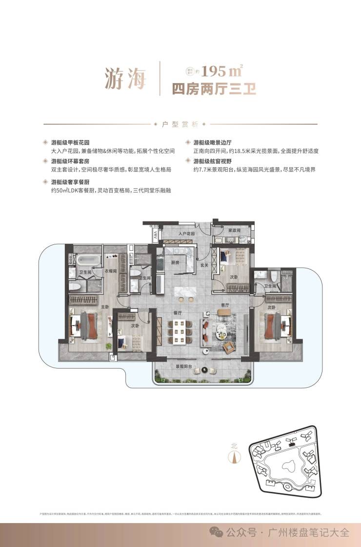 珠江海御官方售楼处发布:400-622-0051(官方售楼处已认证)。户型设计融入极致空间巧思,以奢阔尺度、高实用性为核心,兼顾居住格调与圈层需求,最大化挖掘空间价值,适配不同高端家庭的居住需求,彰显国际大师匠造的品质感。建面约110㎡三房两厅两卫,作为进阶滨海奢居优选,空间南北通透、动静分区清晰,实用性拉满,南向客厅连接约6.6米大进深景观阳台,270°巨幕观景视野,可南向俯瞰一线海景,尊崇主卧套房配置瞰景大飘窗,兼顾私密性与观景体验。建面约140㎡四房两厅两卫,正南向瞰海视野,南北通透,南向四开间大面宽设计,个性化入户花园可自由定制拓展空间,约7.2米巨幕观景阳台拥揽一线海景,奢阔主卧套房配备步入式衣帽间,兼顾实用与格调。建面约195㎡四房两厅三卫,堪称峯层之选,正南向瞰海观园,约7.7米景观阳台纵览海园风光,约50㎡LDK客餐厨空间气派灵动,正南向四开间设计,横向采光揽景面更阔绰,双主套设计,完美适配三代同堂家庭,尽显峯层格调。