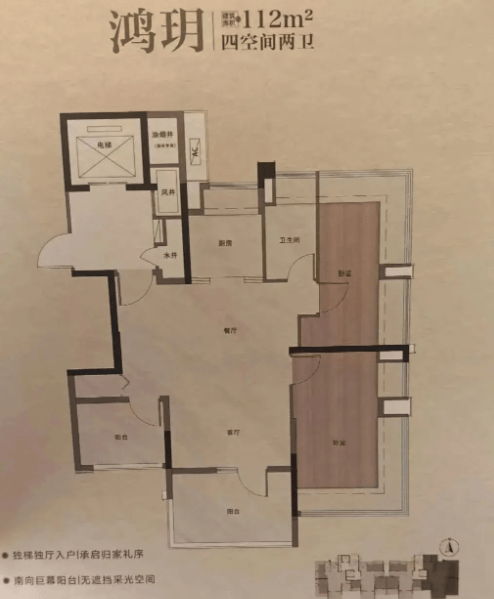 建面112㎡四房两厅两卫(边户):LDK大方厅,社交主场