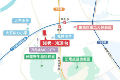此外,大石板块还拥有独特的生态资源优势。项目周边分布着多个公园和绿地,如长隆旅游度假区、大夫山森林公园等,为居民提供了丰富的休闲去处。周末闲暇时,带上家人去长隆看动物表演,去大夫山骑行徒步,感受大自然的清新空气,这样的生活场景在越秀鸿璟台将成为日常。