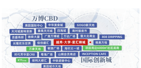 越秀·大学·星汇锦城的区位优势十分显著,项目坐落于番禺南村板块,紧邻国际创新城,处于广深港澳科技走廊与广州科技创新轴的交汇点,享受板块发展带来的多重红利。从项目出发,距离万博CBD仅8公里,距离大学城约10公里,便捷通达番禺核心商圈及科教高地。