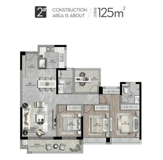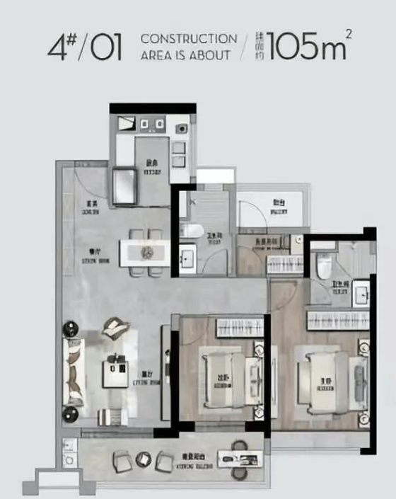 项目总建筑面积约16.33万㎡,由9栋楼宇组成,其中7栋为住宅,2栋为类住宅公寓,总户数996户,确保社区纯粹性与私密感。主力户型涵盖约105㎡、125㎡、140㎡三至四房,以及253㎡、260㎡的奢阔大平层,满足从首置改善到终极置业的多元需求。