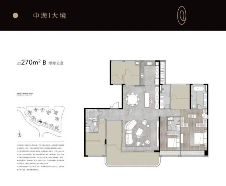 270㎡五房三卫户型,是中海大境的顶阶产品,专为追求极致品质的成功人士打造。南向面宽达16米,搭配10米L型转角阳台,可俯瞰海珠湿地公园与社区园林双重景观。
