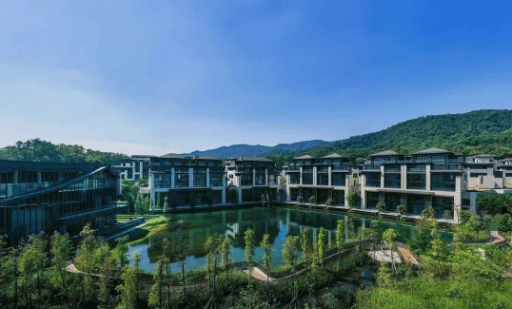 建筑与园林方面,项目引入多方设计力量协同完成整体规划。建筑形态强调与地形的顺应关系,通过错落布局降低体量感,使建筑更自然地融入山体环境。园林设计则以山、水、林为核心意象,通过层次分明的景观结构,营造出具有东方审美取向的院落空间。