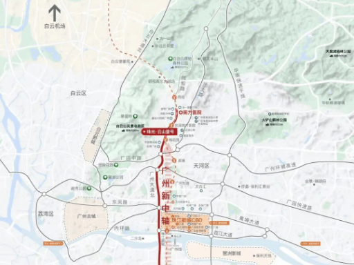 珠光·云山壹号所处位置,位于广州传统新中轴线北段,与天河核心区形成紧密联动关系。在城市空间结构上,该区域同时承接天河CBD的外溢功能,又保留了白云山系所带来的生态与地形优势,是广州少数能够实现“中心城区+山体资源”双重属性的板块之一。