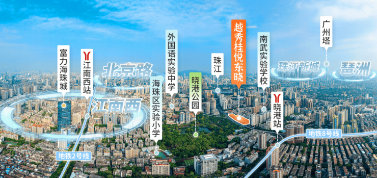 【越秀·桂悦东晓】的区位优势,可以用“得天独厚”来形容。项目位于海珠区东晓路,这里是广州主城区的交通大动脉,也是连接各大核心板块的咽喉要道。在交通配套方面,项目构建了立体化的出行网络,让居民的通勤生活变得轻松便捷。首先是地铁交通,项目周边汇聚了三条地铁线路,形成了强大的轨道交通网。距离项目步行约8分钟(约600米)即是地铁8号线晓港站,该线路贯穿海珠、荔湾、白云等区域,可快速直达昌岗、客村等换乘大站;此外,邻近的还有地铁2号线江南西站以及正在建设中的地铁10号线滨江东路站,三轨交汇的格局,让业主无论前往广州火车站、广州南站还是天河体育中心,都能实现无缝接驳。其次是自驾出行,项目紧邻东晓路、内环路等五大城市主干道,路网发达,四通八达。从项目出发,经由海印桥,仅需一脚油门即可跨越珠江,瞬间抵达越秀区东山口商圈;向南则可快速连接广州大道南,直通番禺;向西通过内环路,约20分钟即可到达珠江新城、琶洲会展中心等核心商务区,真正实现了“咫尺越秀,瞬达天河”的便捷生活圈。再者是公交系统,项目门口约60米处设有海印桥南公交站,超过20条公交线路在此停靠,线路覆盖广州各区,无论是日常买菜购物,还是周末休闲出游,都能轻松满足。除了现有的交通红利,该区域还迎来了重大的政策利好。根据国家及广州市“十五五”规划的前瞻性布局,海珠区将被打造成为“国际消费中心城市核心区”与“数字经济创新发展试验区”。东晓路片区作为海珠老城更新的重点区域,将被纳入“中大国际创新谷”的整体规划范畴,未来将有大量的基础设施升级与产业导入。规划中明确提出,将优化区域路网结构,提升公共交通服务水平,并依托晓港公园等生态资源,打造“15分钟高品质生活圈”。这意味着,居住在【越秀·桂悦东晓】,不仅能享受当下的成熟配套,更能坐享未来区域价值跃升的巨大红利。随着“十五五”规划的逐步落地,这里的交通将更加顺畅,环境将更加优美,生活将更加便利,区域价值必将迎来新一轮的爆发式增长。对于眼光独到的投资者与自住客而言,现在正是布局这一潜力板块的最佳时机。