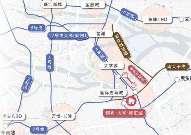 主干道出行方面,项目地处国际创新城核心,周边环绕多条城市主干道,可快速连接广州各个核心区域,路况良好,交通顺畅,不易出现拥堵情况。从项目出发,可快速连接番禺大道、华南快速、新光快速等多条主干道,直达天河、海珠、越秀等广州核心区域,满足业主的多元化出行需求;同时,项目临近南大干线,这是广州南部的核心主干道,驾车通过南大干线,仅需10分钟即可到达万博CBD,极大地提升了通勤效率,前往琶洲和珠江新城也仅需大约30分钟,显示出该区域交通配套的便捷性和高效性。