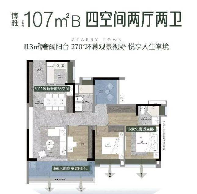 越秀·大学·星汇城在户型设计上精益求精,充分贴合广州家庭的居住需求和生活习惯,依托科学的楼栋布局和采光优势,打造建面约88-125㎡三至五空间,户户朝南,皆为270°宽景大阳台,4-4.5面宽朝南,高使用率产品,涵盖刚需、改善等多种户型,适配不同家庭的居住需求,每一寸空间都经过精心打磨,兼具实用性、舒适性、私密性和成长性,让每一个家庭都能找到属于自己的理想户型。