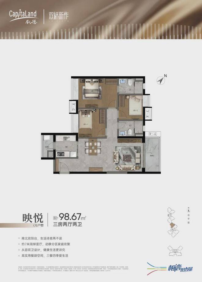 凯德・双桥新作以其独特的江心岛地理位置、便捷的交通、丰富的教育和医疗资源以及多样化的休闲配套,成为大坦沙岛上令人瞩目的理想人居项目。无论是年轻夫妻开启新生活,还是家庭为孩子教育和健康考虑换房,亦或是改善型购房者追求更高品质的居住体验,凯德・双桥新作都能满足需求。其精心设计的户型,从紧凑实用的两房到宽敞舒适的四房,涵盖了不同家庭结构的需求。周边完善的配套设施,让居民既能享受繁华都市的便利,又能拥有宁静舒适的居住环境。如果您正在寻觅一处能享受江景生活、拥有优质配套的理想家园,凯德・双桥新作无疑是您的不二之选,期待在这里开启您的美好生活新篇章。