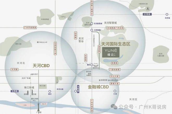 合生缦云是合生创展在广州推出的缦系首作,选址天河国际生态区核心地带,占据约71万平方米城市林海与月亮湖的绝佳自然资源。这里距离天河CBD和金融城CBD直线仅约6公里,半小时生活圈内就能无缝切换都市繁华与山林静谧,属于天河难得的城央半山住区。